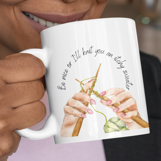 "Be Nice or I'll Knit You an Itchy Sweater" Mug