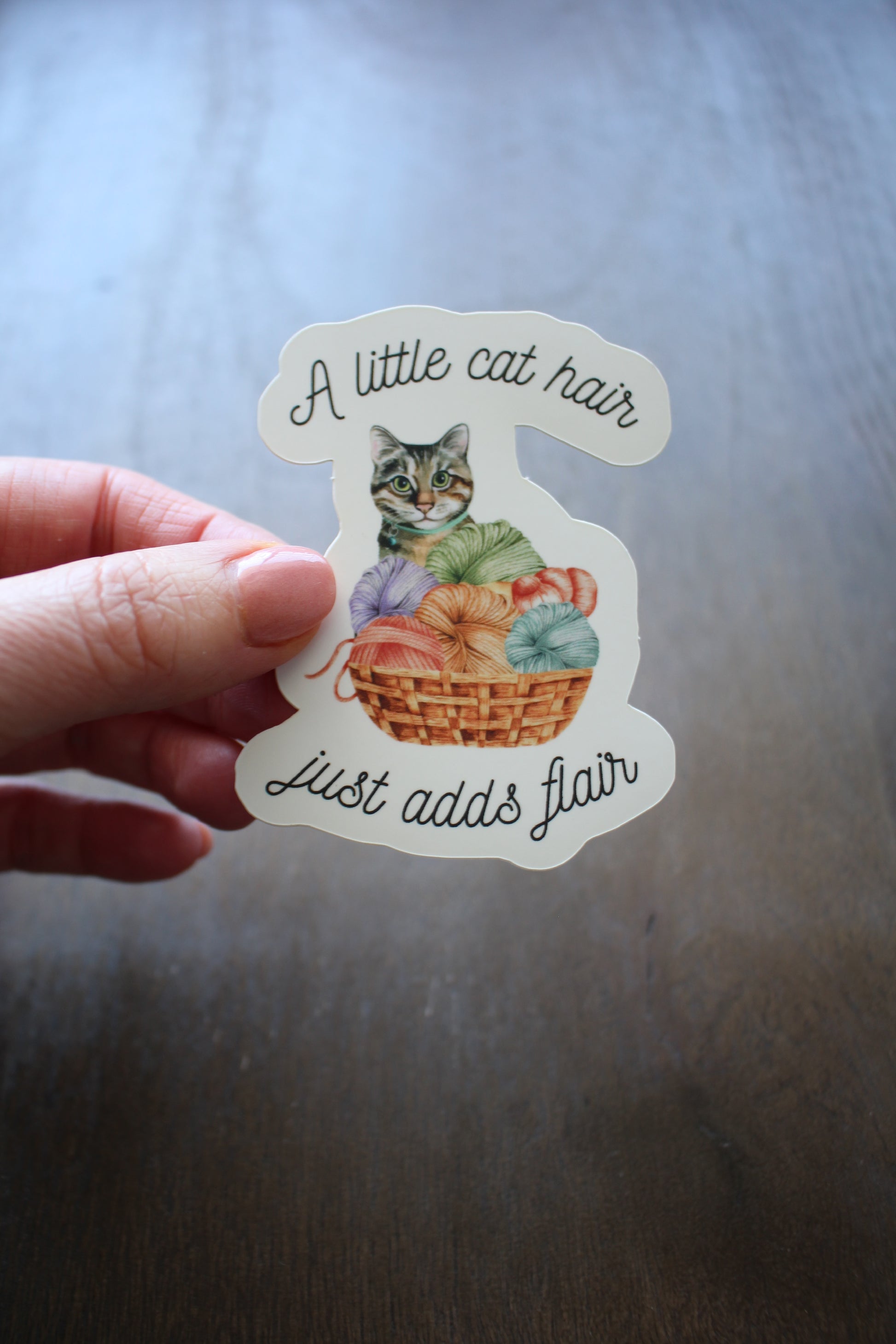 Do you collect yarn AND cats? Then you need this sticker! "A Little Cat Hair Just Adds Flair" is part of our "Crafty Cat Lady" sticker collection! Collect all 5!