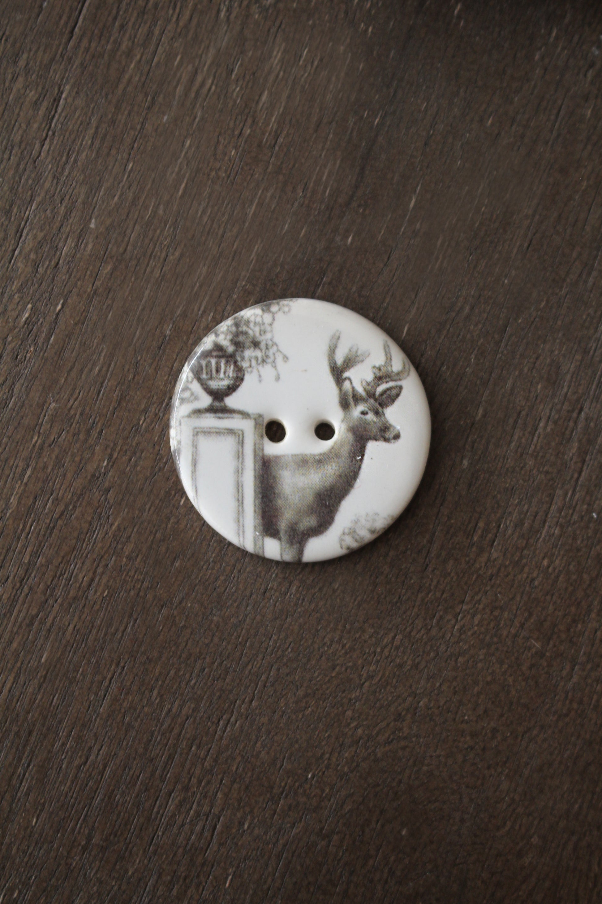 This lovely button features a majestic deer with detailed antlers, perfect for adding a nature-inspired, rustic touch to your sewing, knitting, or embroidery creations.