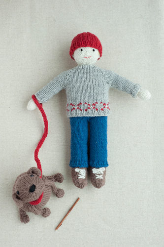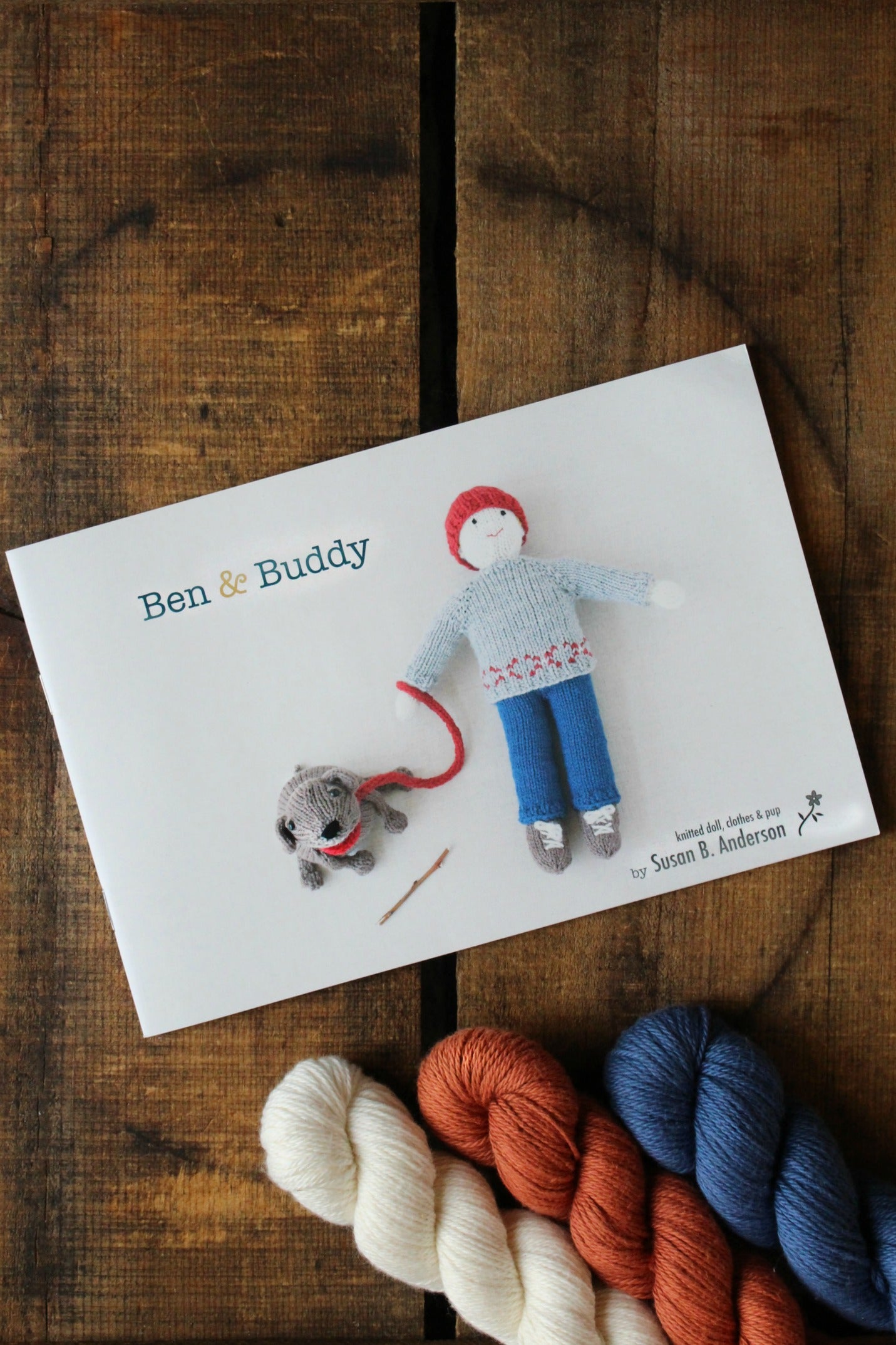 Ben & Buddy is an adorable knitted boy doll and dog duo, complete with accessories, designed by Susan B. Anderson. One pattern each for doll, sweater, pants, hat, dog, and leash are included. Nearly everything is knitted seamlessly from the top down. Sweet details, clear instructions, and clean design make this pair irresistible to knit.