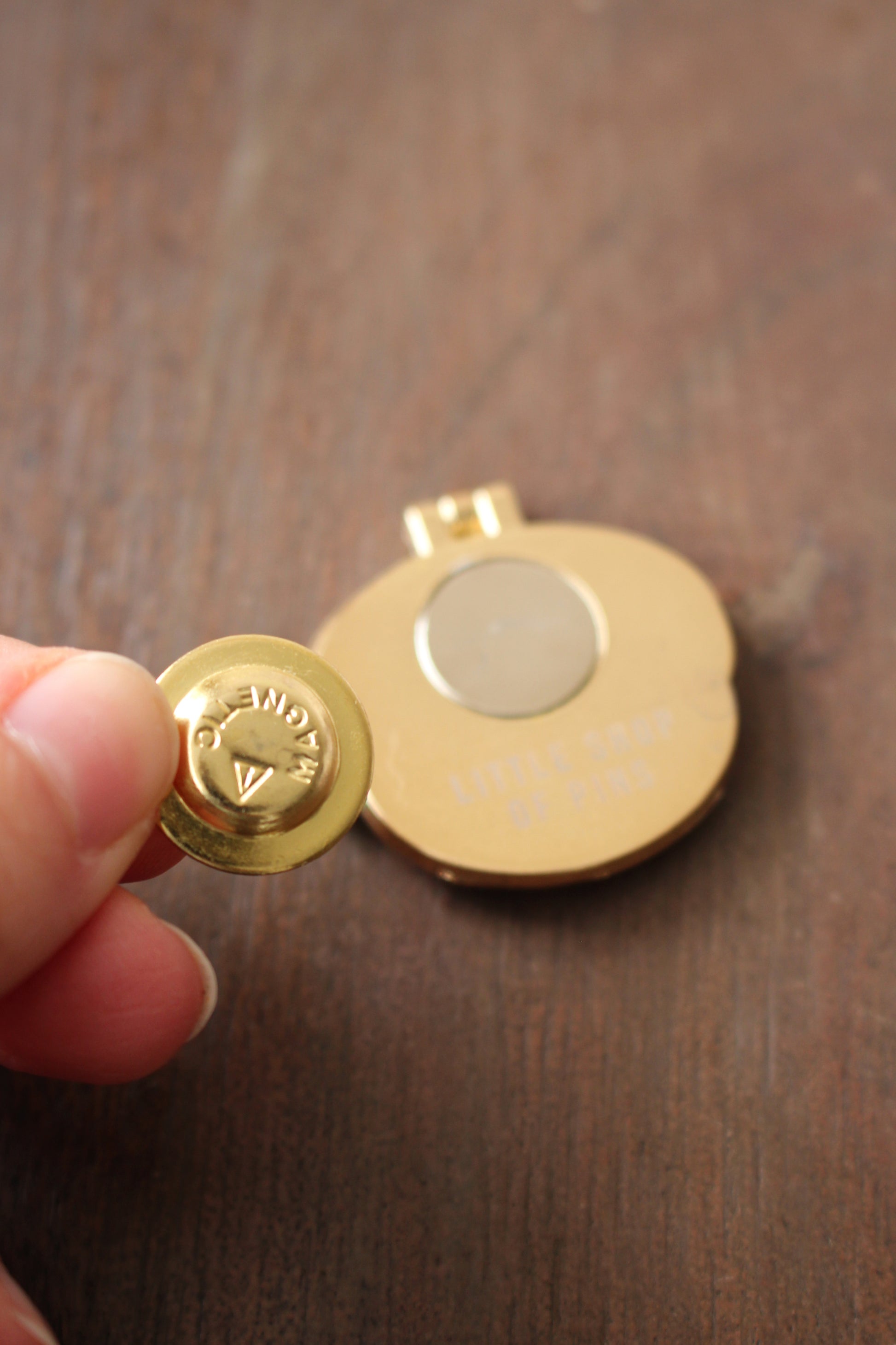 Open the lid and the magnetic tin will hold your pins and needles securely while you are stitching. Use the extra magnetic back to secure to your fabric!