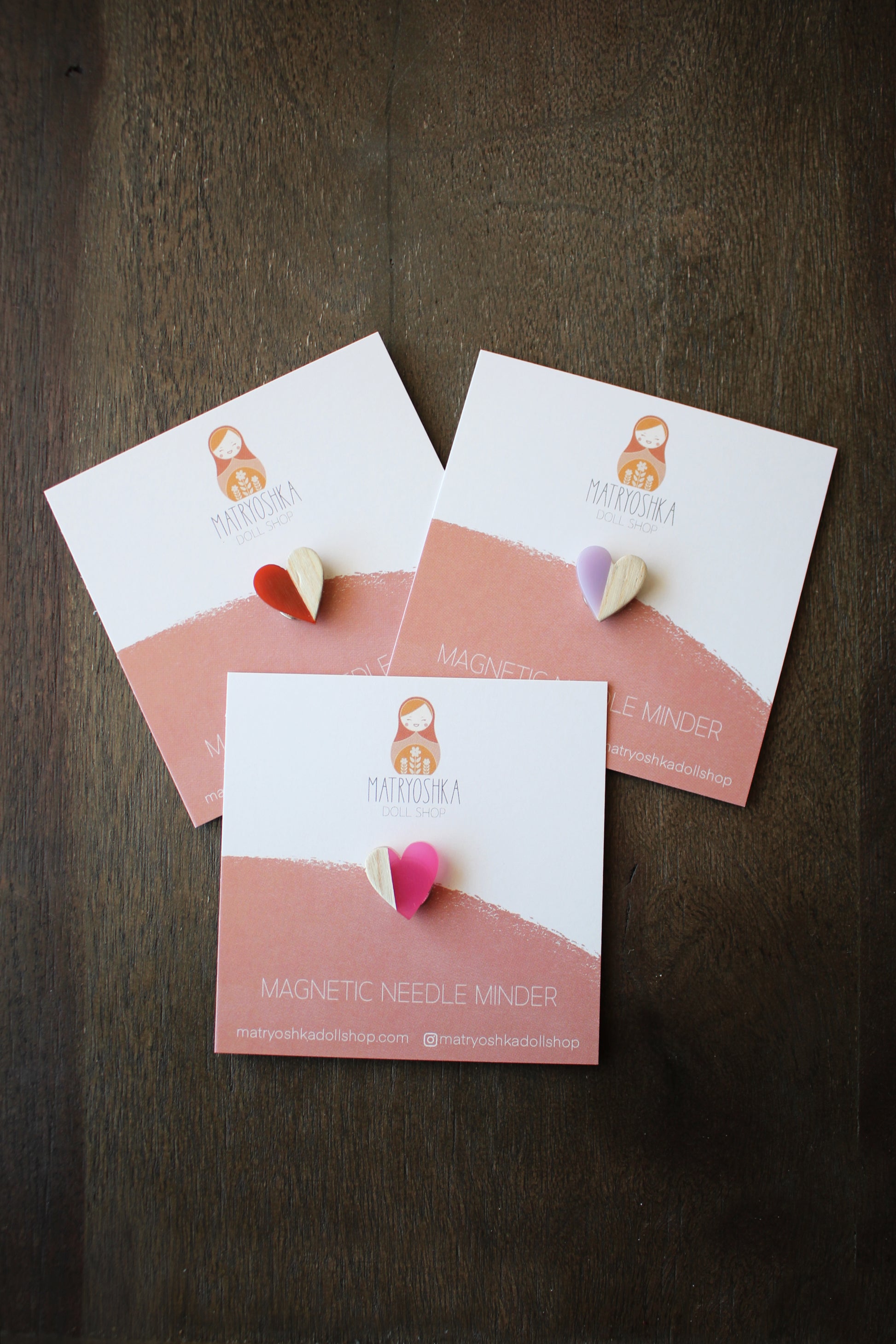 A cute little heart to add to your stitching project! Whenever you need to set your needle down while stitching, all you need to do is place it on the heart and the needle will be held in place by the magnetic backer. Available in 10 color options.