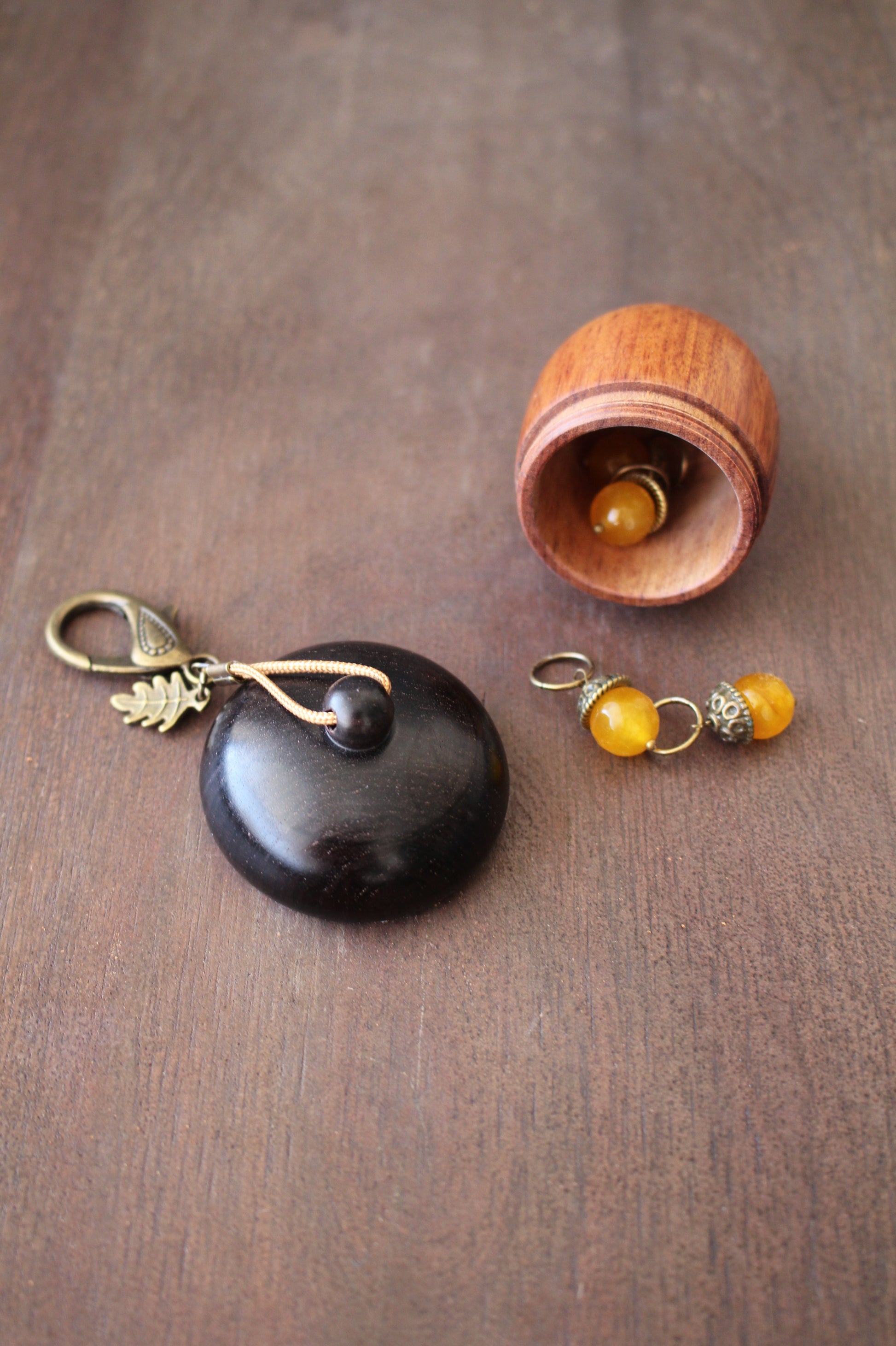 The "big sister" to our Little Acorn Stitch Marker Keeper, this larger acorn twists open to reveal 4 acorn stitch markers made with semi-precious stones inside. Attach to your favorite project bag and squirrel away all of your stitch markers for when you need them most!