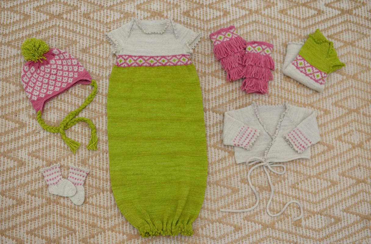 No matter whether you'll get to hold her every day or see her in pictures from afar, she's sure to feel the love in every stitch. Pamper that new girl for as long as she will allow it. You'll be knitting each piece over again as your New Girl grows.
