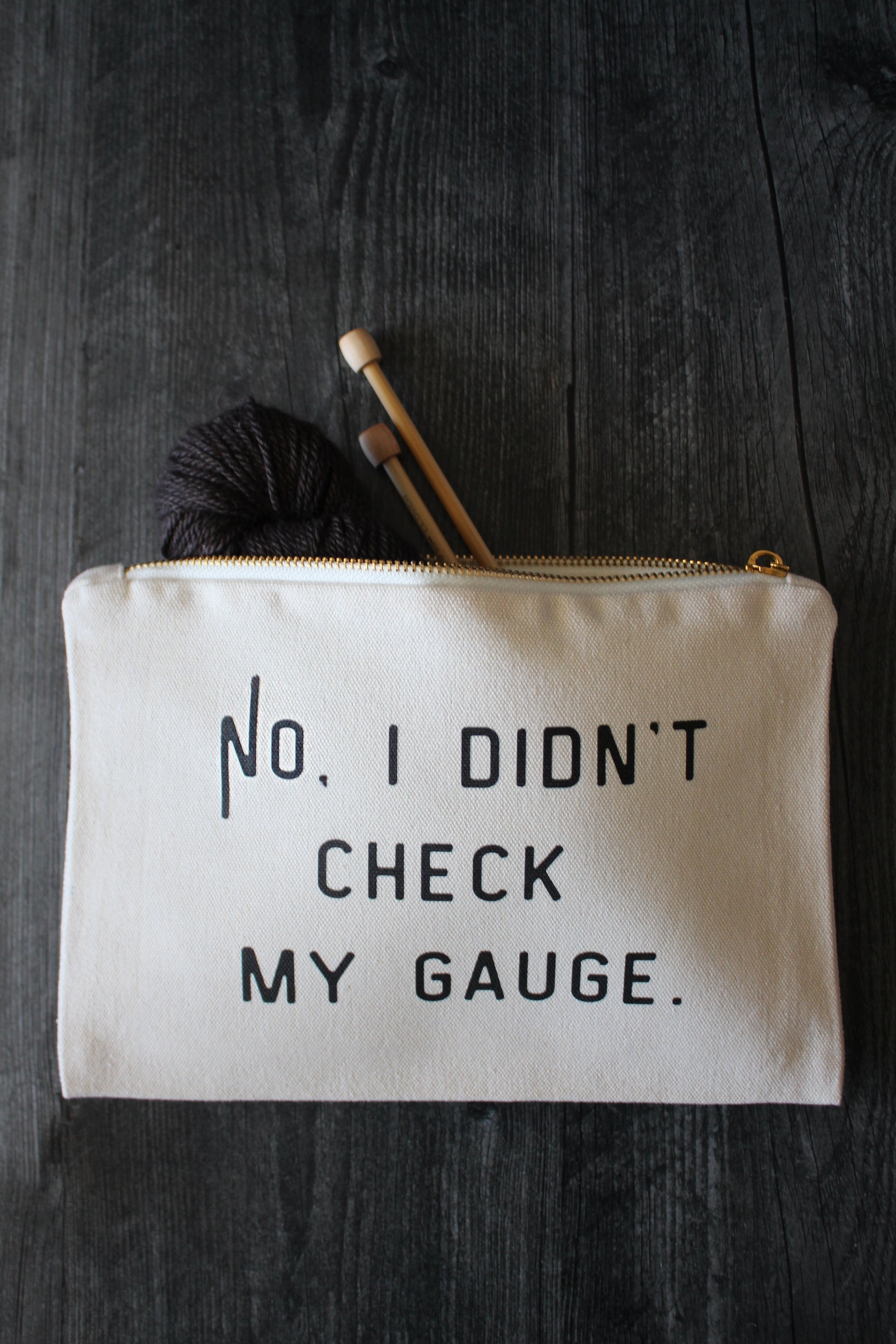 This zippered pouch will securely hold your small works in progress whether you checked your gauge first or not! This pouch is sewn from sturdy 100% cotton canvas with a satiny lining and a gold metal zipper.