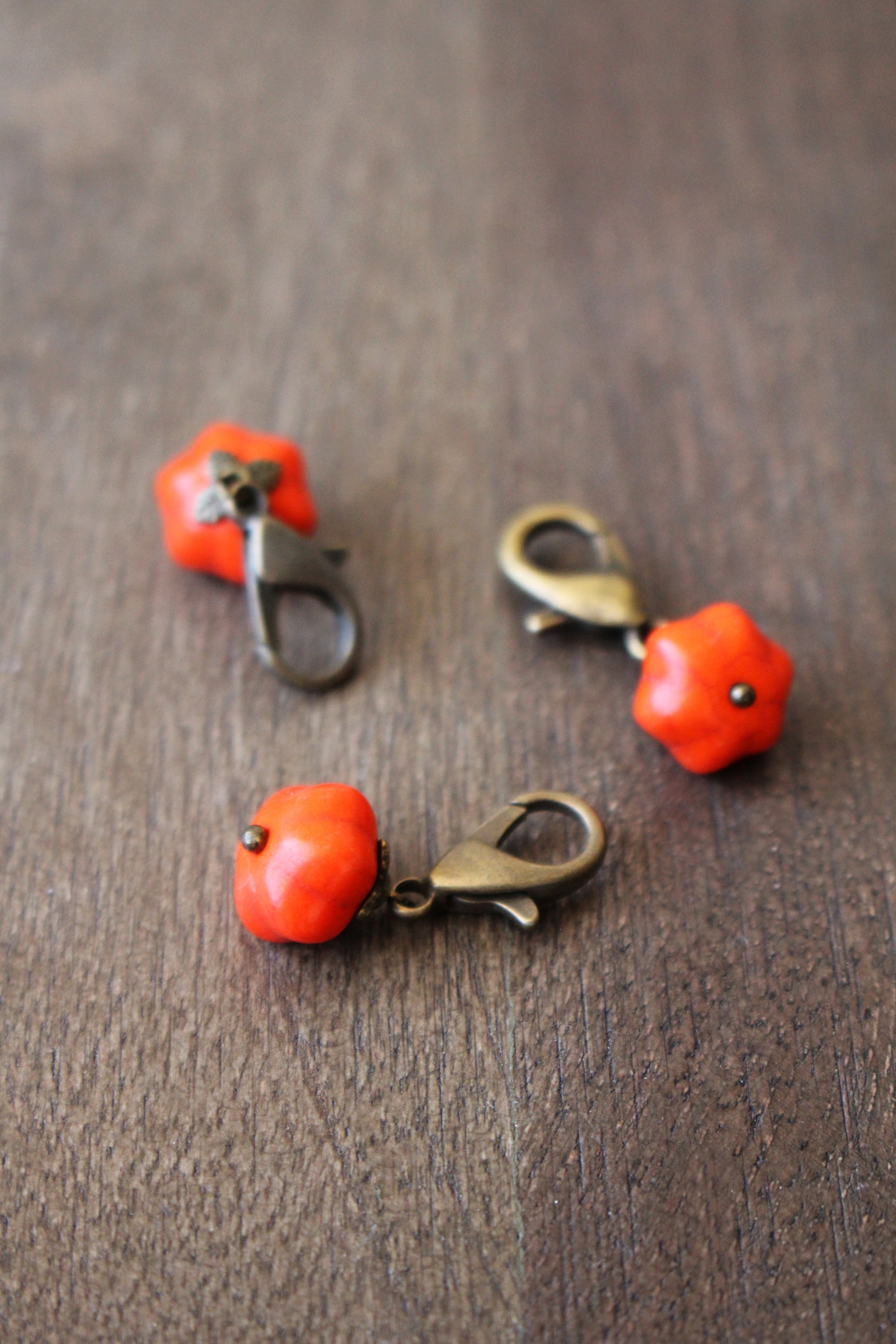 Keep track of what row you are on in your pattern with our seasonal Pumpkin Spice Progress Keeper or attach to your favorite bag as a stylish zipper pull. Features a carved stone pumpkin bead. Measures approx 1.25" in length. Sold Individually.