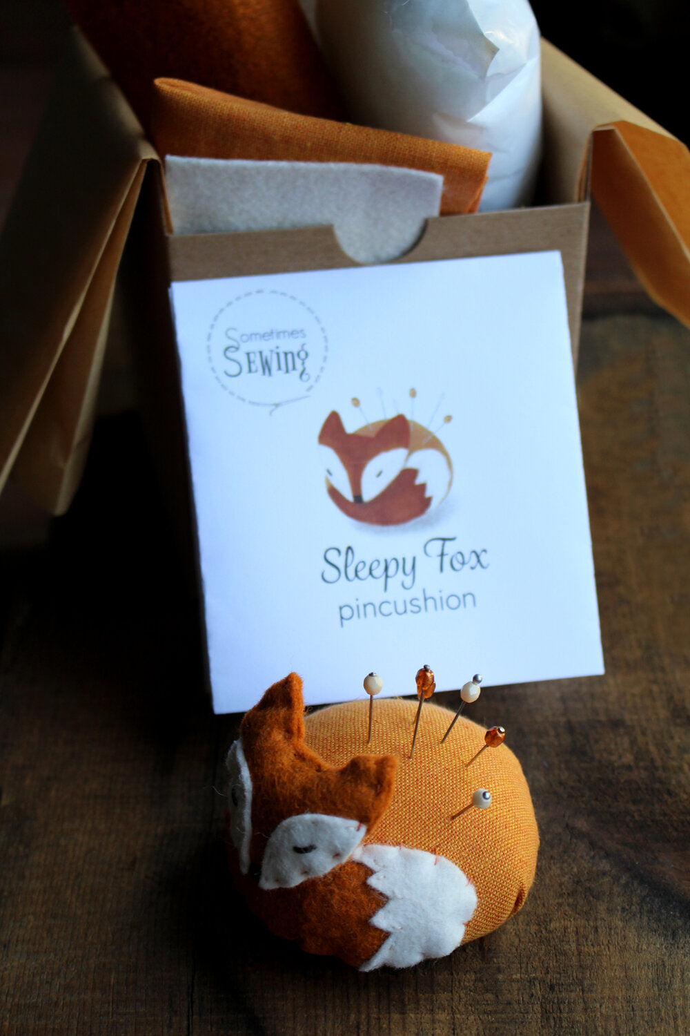 Make your own Sleepy Fox Pincushion with this adorable kit from Sometimes Sewing.
