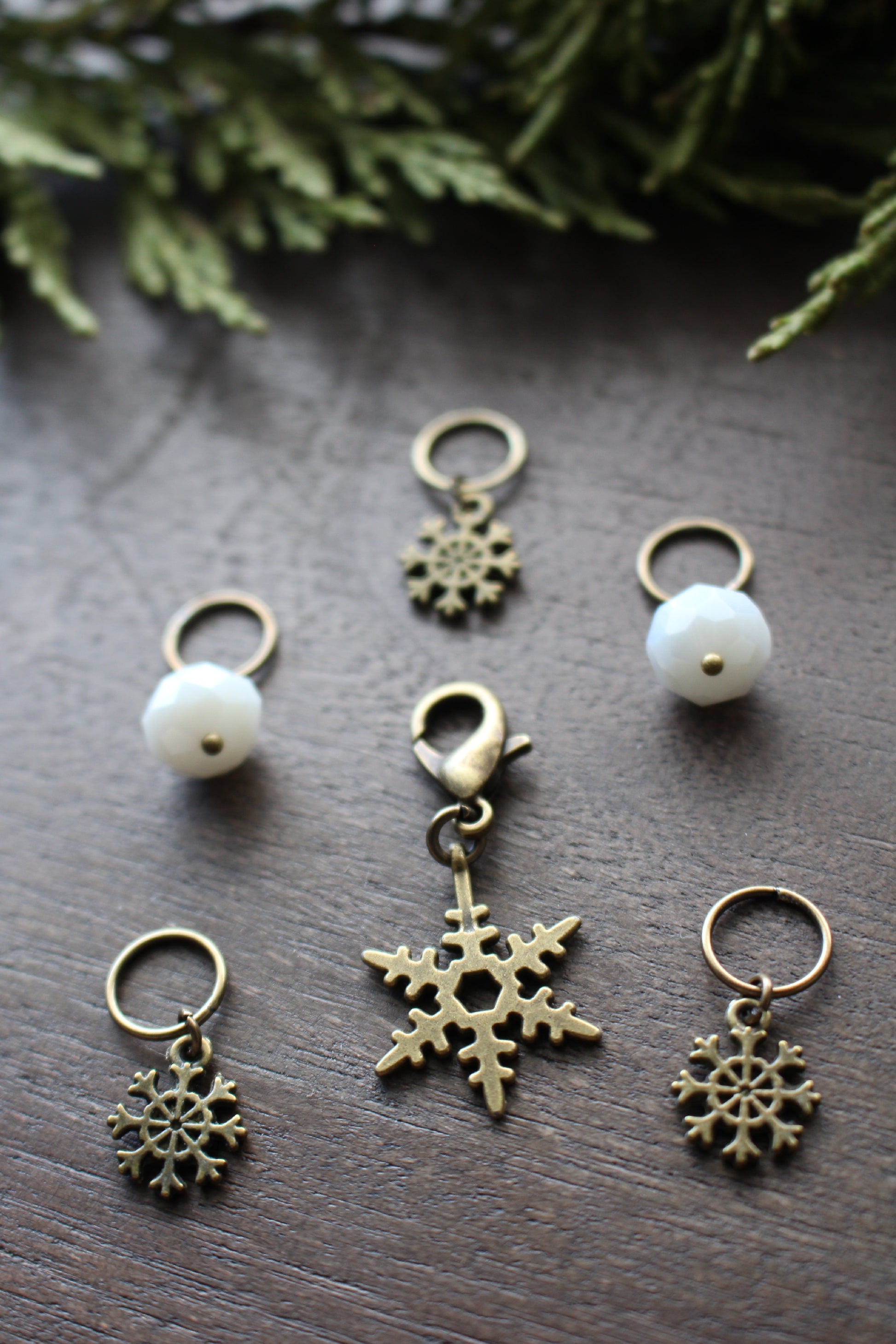Adorn your stitches in a winter wonderland with our Snowfall Stitch Markers –a charming set of 5 small snowflake ring markers and 1 large snowflake progress keeper. Each marker is intricately designed to resemble delicate snowflakes, turning your needles into a canvas of winter elegance. Let your stitches dance like snowflakes, creating a symphony of winter beauty as you knit.