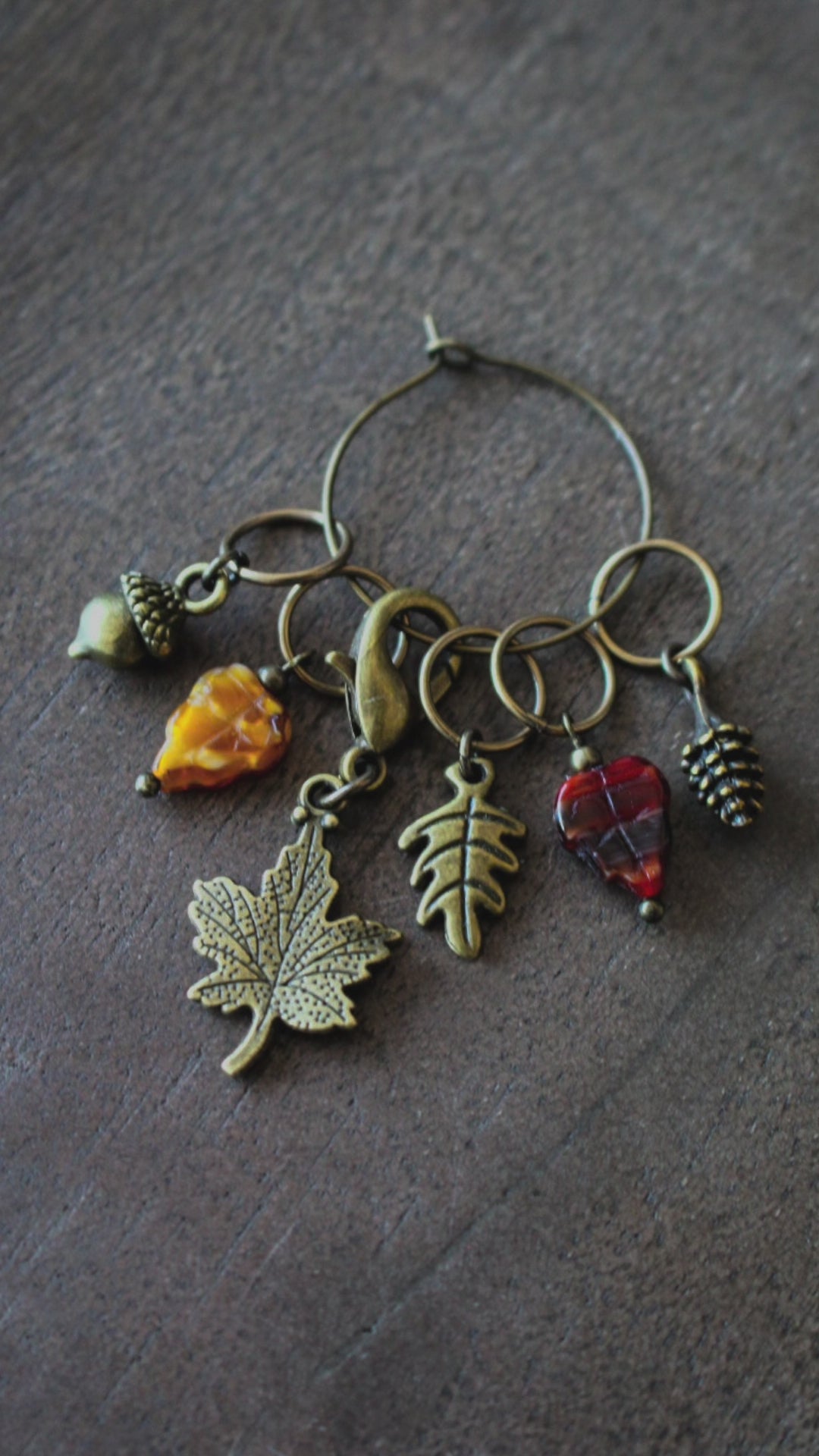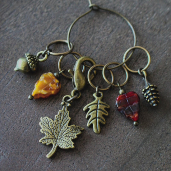 Changing leaves, pinecones, and acorns? Feels like Fall! This set features 5 ring markers and one leaf progress keeper to help you keep track of all your stitches this Autumn.