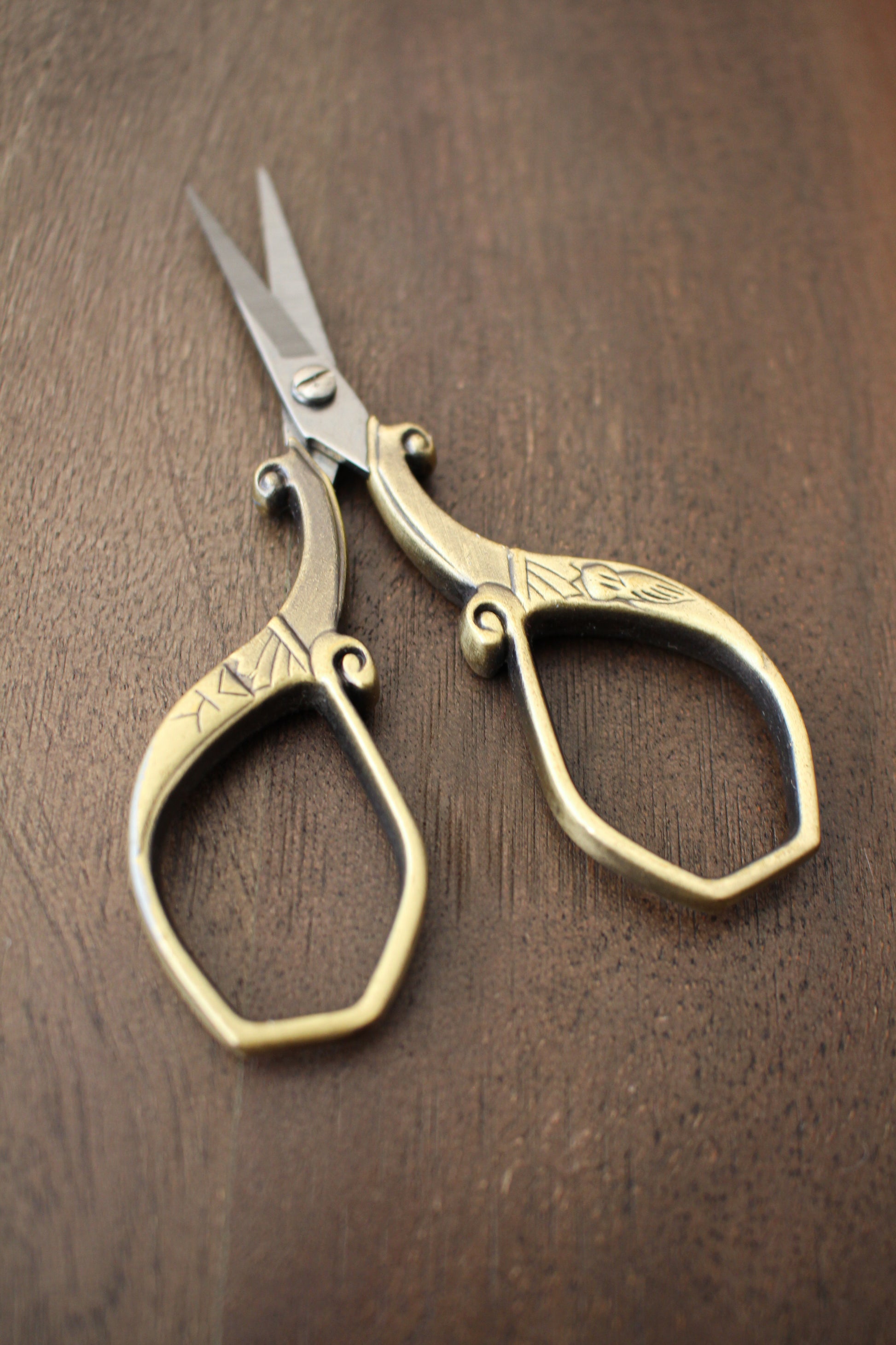 Embroidery scissors with high quality stainless steel blades and elegant square shaped handles. Perfect for snipping yarn tails and threads, these little beauties would make a great addition to your knitting bag or sewing basket.
