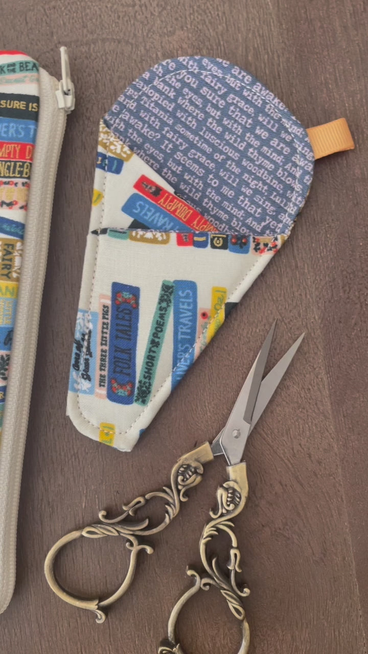 Each gift set includes a handmade lined zippered pouch with a coordinating scissor sleeve and pair of Storybook Embroidery Scissors with room to hold much more! Each set arrives beautifully wrapped, ready for gift giving!