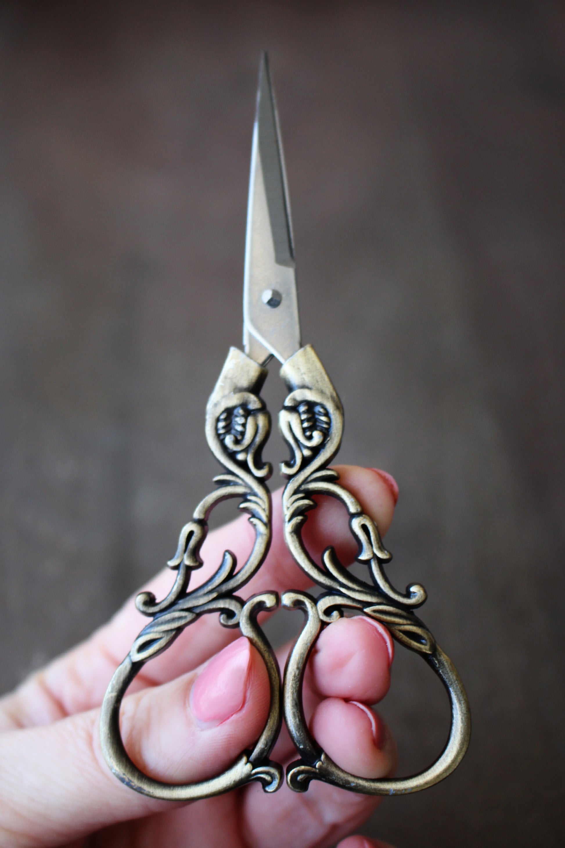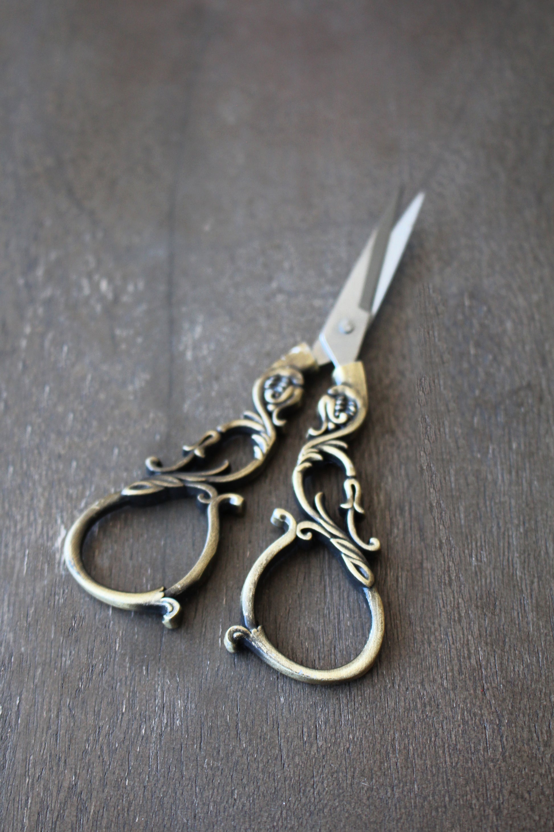Embroidery scissors with high-quality stainless steel blades and whimsical intricate handles. Perfect for snipping yarn tails and threads, these little beauties would make an elegant addition to any knitting bag or sewing basket.