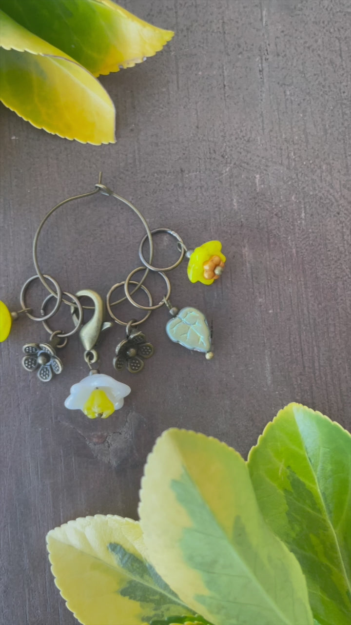 You know what they say about April showers... they bring May flowers! Here are two raindrop and umbrella stitch marker sets as well as two sets of blooming florals. Each consists of 5 ring stitch markers that fit up to a US10 knitting needle and 1 removable progress keeper. Each set sold separately.